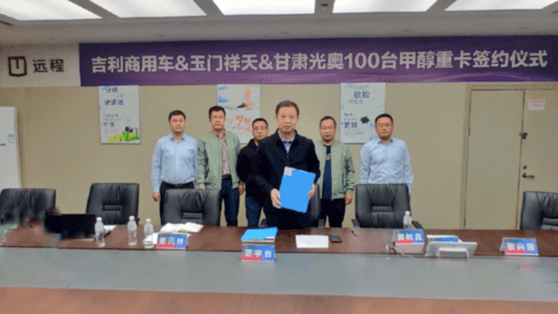 近日,吉利新能源商用車旗下醇氫科技與玉門祥天、甘肅光奧舉行100臺甲醇重卡的線上簽約儀式。三方將共同在甘肅酒泉建設完善的甲醇運力、甲醇加注生態(tài),形成以甘肅酒泉為中心,輻射周邊陜西、新疆、內(nèi)蒙等省市的甲醇重卡運力網(wǎng),為打造中國首個綠色甲醇生態(tài)物流示范城市和首條示范線路開啟新篇章。