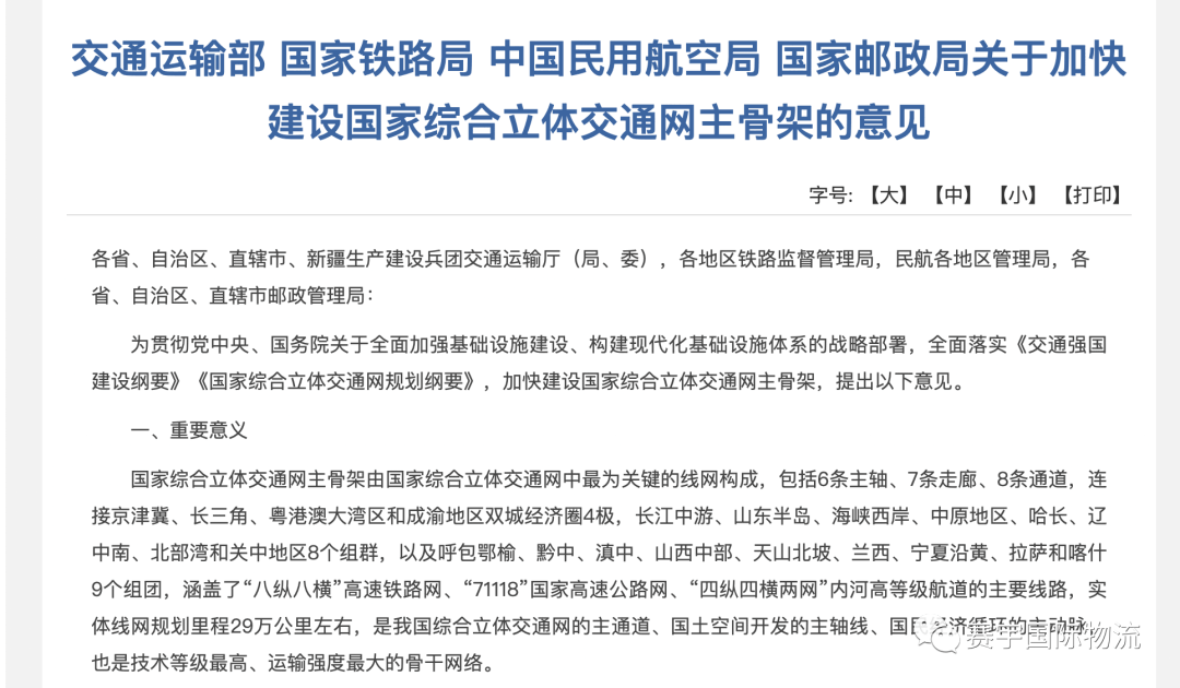 經過十年的沉淀與積累,我國正在從物流大國走向物流強國。接下來,越來越強大的物流業也為更好服務我國經濟社會高質量發展做足了準備。 10月24日,交通運輸部、國家鐵路局、中國民用航空局、國家郵政局發布《關于加快建設國家綜合立體交通網主骨架的意見》(以下簡稱《意見》)。其中明確到2035年,主骨架全面建成,網絡韌性顯著增強,基礎設施質量和安全、智能、綠色水平達到世界前列,有力支撐“全國123出行交通圈”和“全球123快貨物流圈”構建,為基本建成交通強國奠定堅實基礎