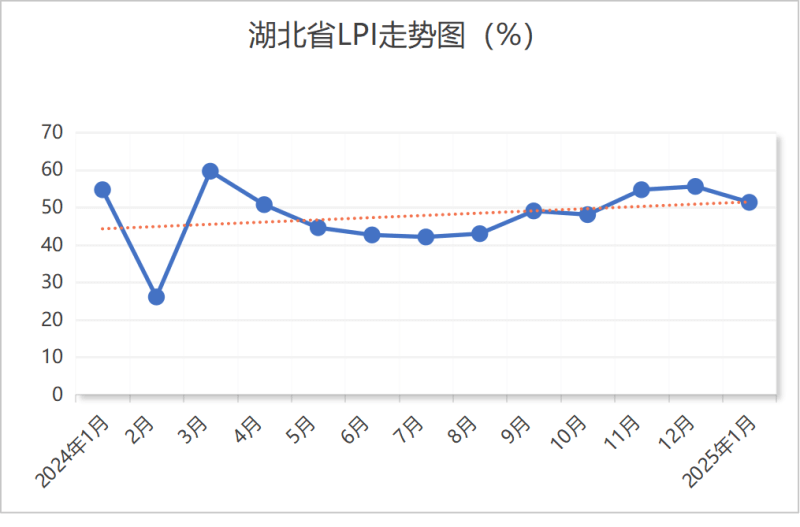 2025年1月湖北省物流業(yè)景氣指數(shù)為51.32%